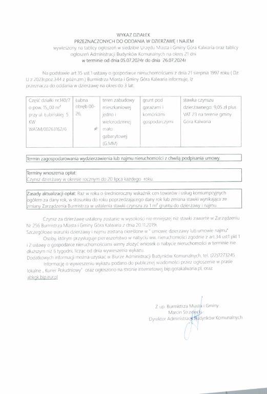 Wykaz działek przeznaczonych do oddania w dzierżawę i najem